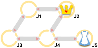 In Sample Case #4, the Queen can begin by announcing that she will move to Alice's current junction. Alice has to move before then. If Alice moves to where the Queen already is, she gets caught immediately; if Alice remains in place, then she gets caught when the Queen moves. The second option is better, since it requires $2$ total moves (Alice's and the Queen's) instead of $1$.